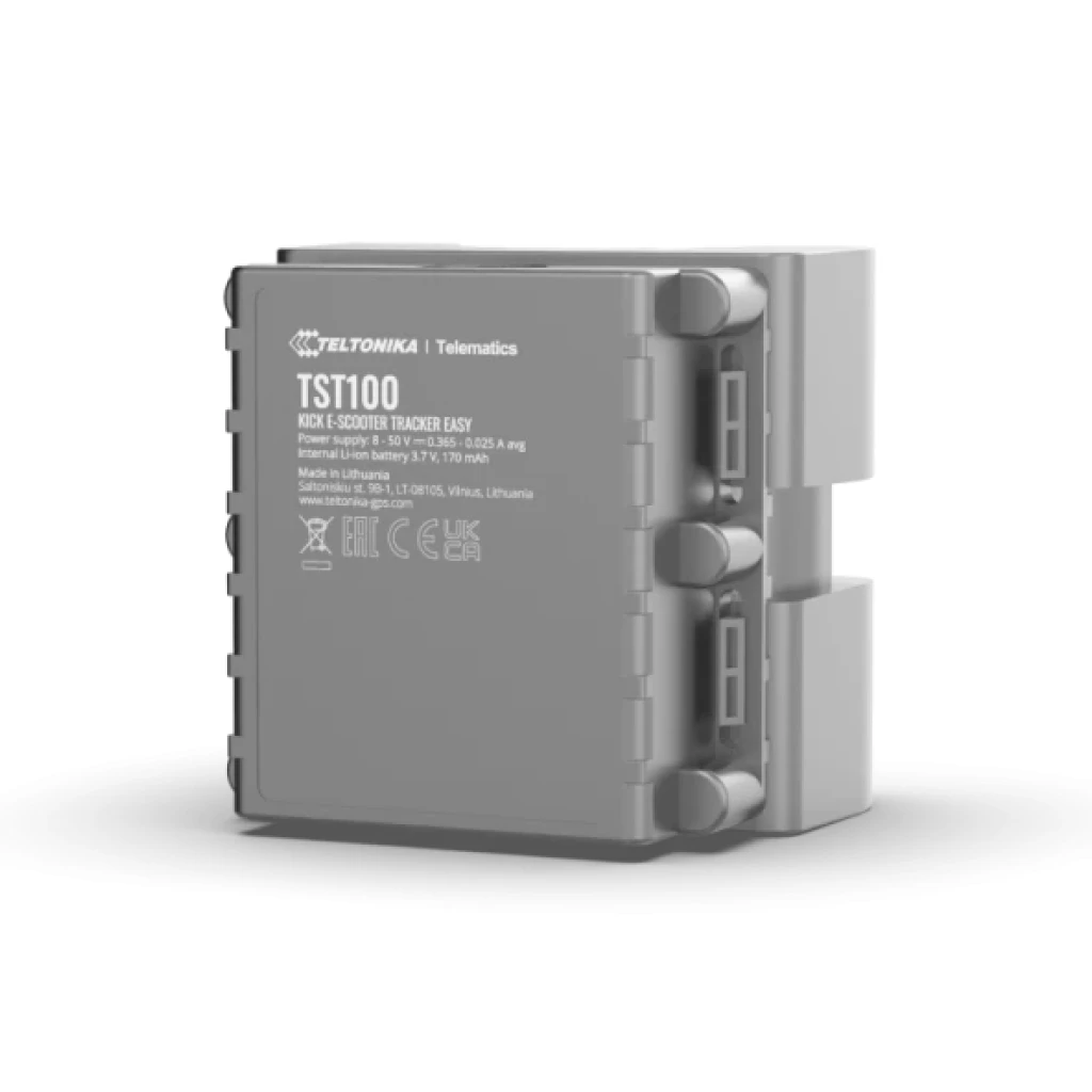TST100 — это продвинутое IoT-устройство для отслеживания и мониторинга электросамокатов. Оно поддерживает технологии GSM, GPRS, GNSS и Bluetooth, позволяя отслеживать GPS, ГЛОНАСС, GALILEO и другие системы. Устройство оснащено внутренними антеннами и литий-ионной аккумуляторной батареей.